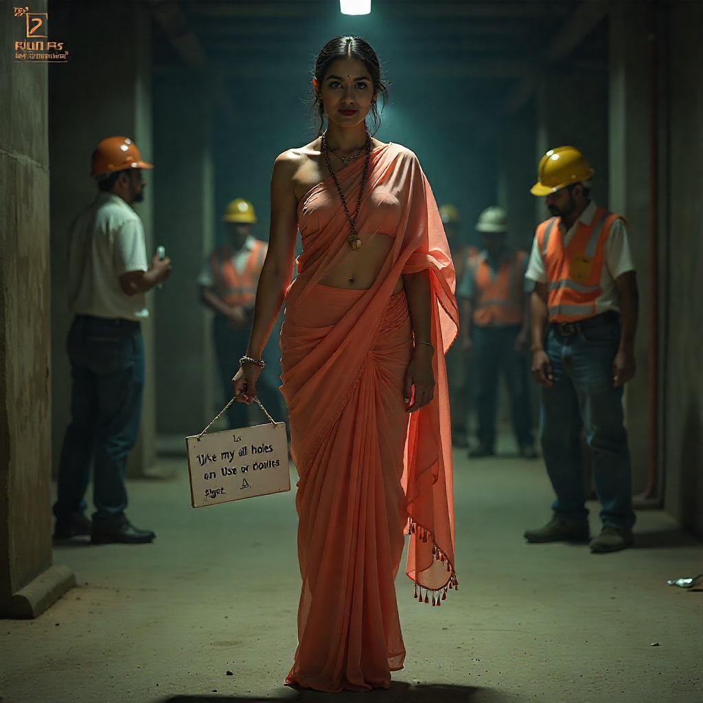 I travel to construction site with misplaced pallu which hide nothing and red lipstick on lips π and in hand there is board which reads "Fuck me like RANDI that I am"